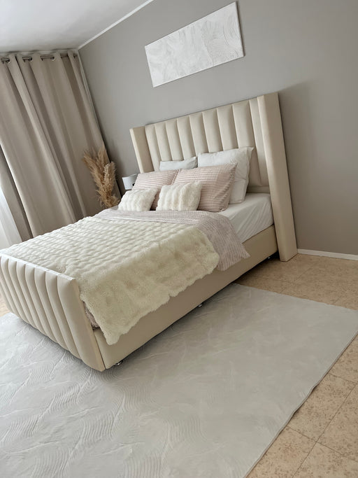 Créez l'harmonie parfaite dans votre chambre avec notre lit coffre MYLEEN en tissu laine bouclée ou velours pour une ambiance chic et élégante