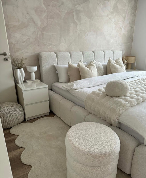 Découvrez le nouveau lit coffre Nuage en laine rasée, un modèle tant attendu qui allie praticité et esthétisme raffiné. Parfait pour ceux qui reche...