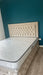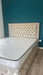 Structure & Matière : Cadre et Tête de lit en panneau aggloméré, capitonnage Mousse Haute Résilience, Tissu en coton aspect Velours.