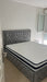 Structure & Matière : Cadre et Tête de lit en panneau agglomérer, capitonnage Mousse Haute Résilience, Tissu en coton aspect Velours.