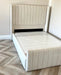 Notre cadre de lit Tokyo, vous propose un design chic et élégant avec sa tête de lit en coton aspect velours lisse et ses oreilles détachables.
